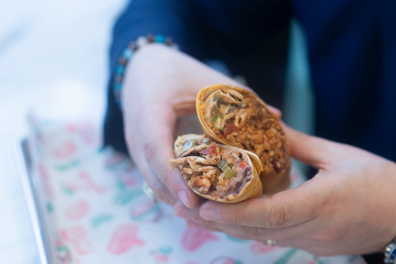 Izgarada ısıtılmış tortilla ekmeÄŸine Meksika fasulye püresi ve Meksika pilavı konulup üzerine salsa sos, sour cream, avokado ( guacamole ) sos, jalapeno biber, kiÅŸniÅŸ, cheddar peynir sosu ve chipotle sos sıkılıp istenilen ürün konulduktan sonra sıkı bir ÅŸekilde sarılması gerekmektedir.
