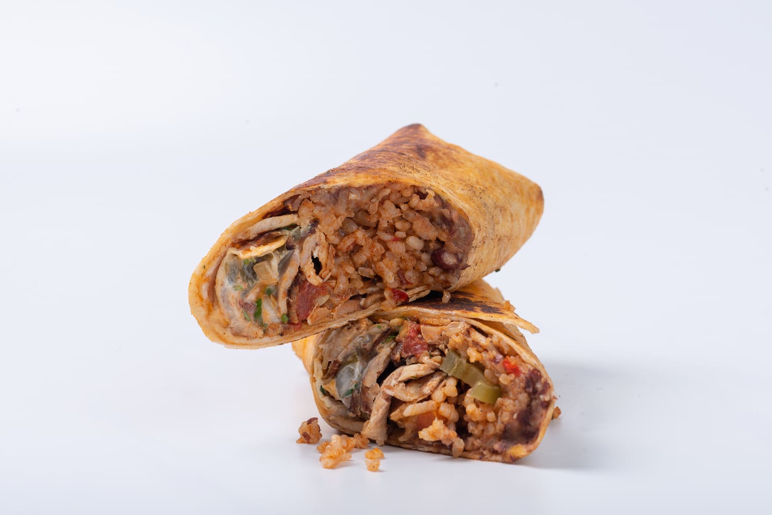 30 cm soft tortilla arasında seçeceÄŸiniz Barbacoa stilinde et veya Asado stilinde tavuk veya nohut, kıyma, karides eÅŸliÄŸinde piÅŸmiÅŸ soÄŸan ve renkli biber, Meksika fasulye püresi, Meksika pilavı, sour cream, salsa sos, kiÅŸniÅŸ, avokado (Guacamole sos), jalapeno biberi, cheddar peynir sosu ve chipotle sos ile...